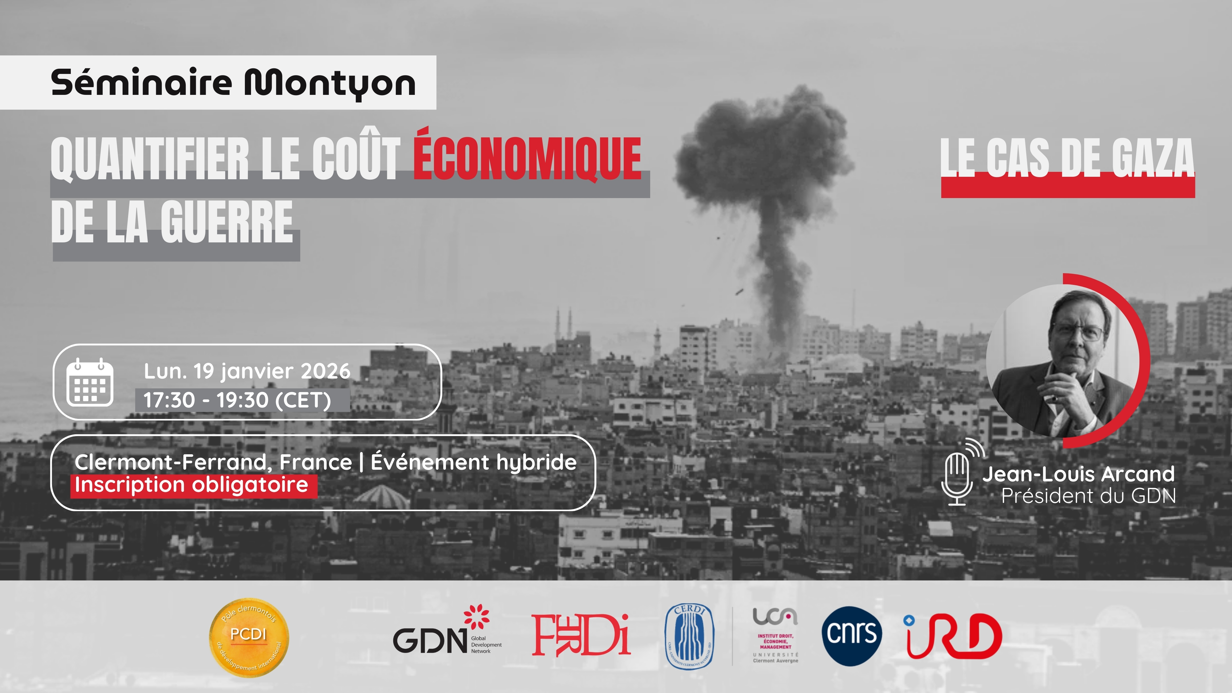 Comment évaluer l'impact économique d'une guerre quand les données traditionnelles sont rares, fragmentaires ou polarisées ? Le Pôle clermontois de développement international (PCDI) lance sa série de séminaires Montyon, un nouveau rendez-vous mensuel destiné à explorer des questions actuelles de politique de développement.
