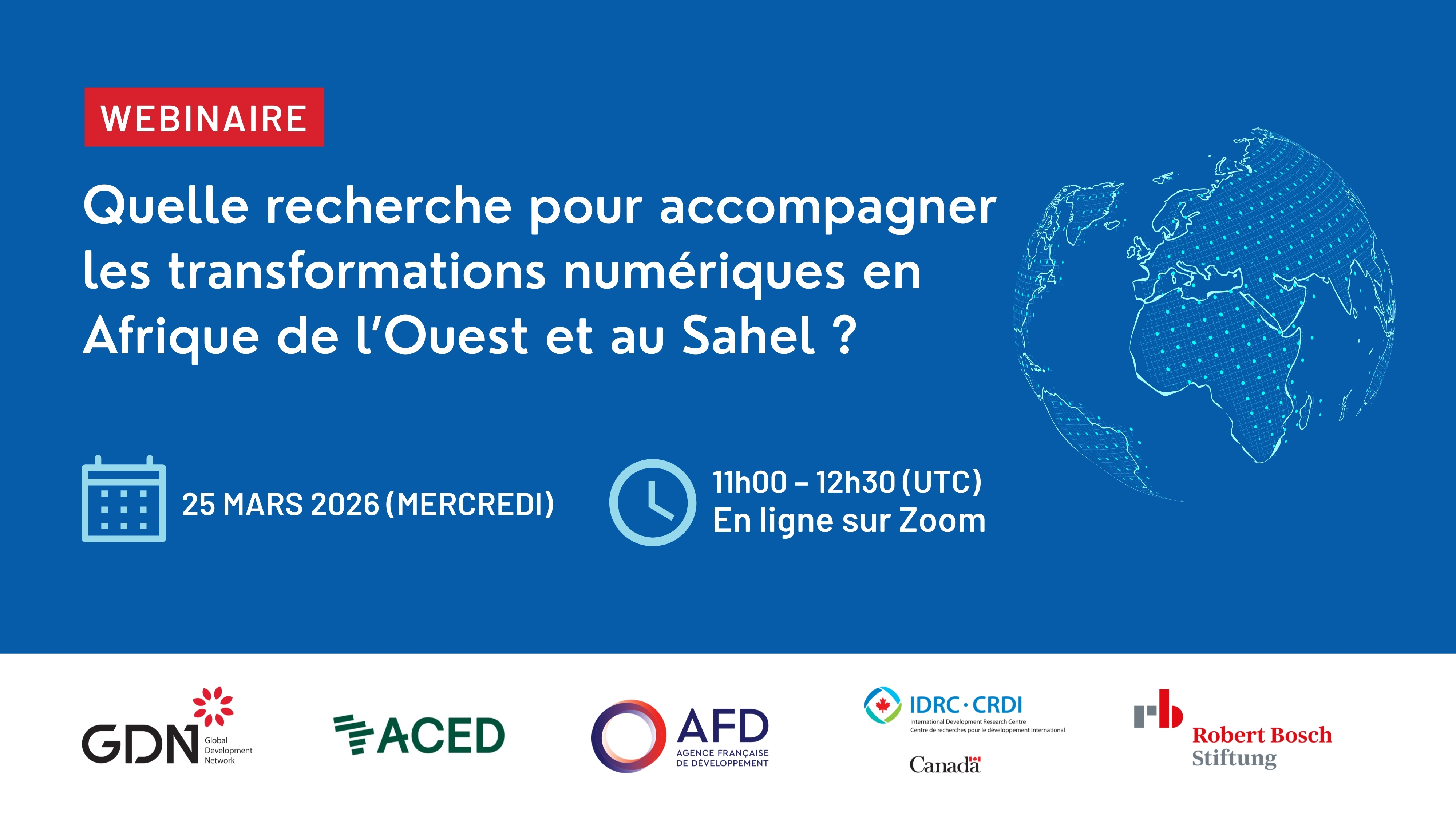 Les transformations numériques en cours en Afrique de l’Ouest et au Sahel soulèvent des enjeux majeurs pour les politiques publiques, les approches de développement et la production de connaissances. Afin de mettre en discussion ces enjeux, le Global Development Network a le plaisir de vous inviter à participer à un webinaire intitulé :