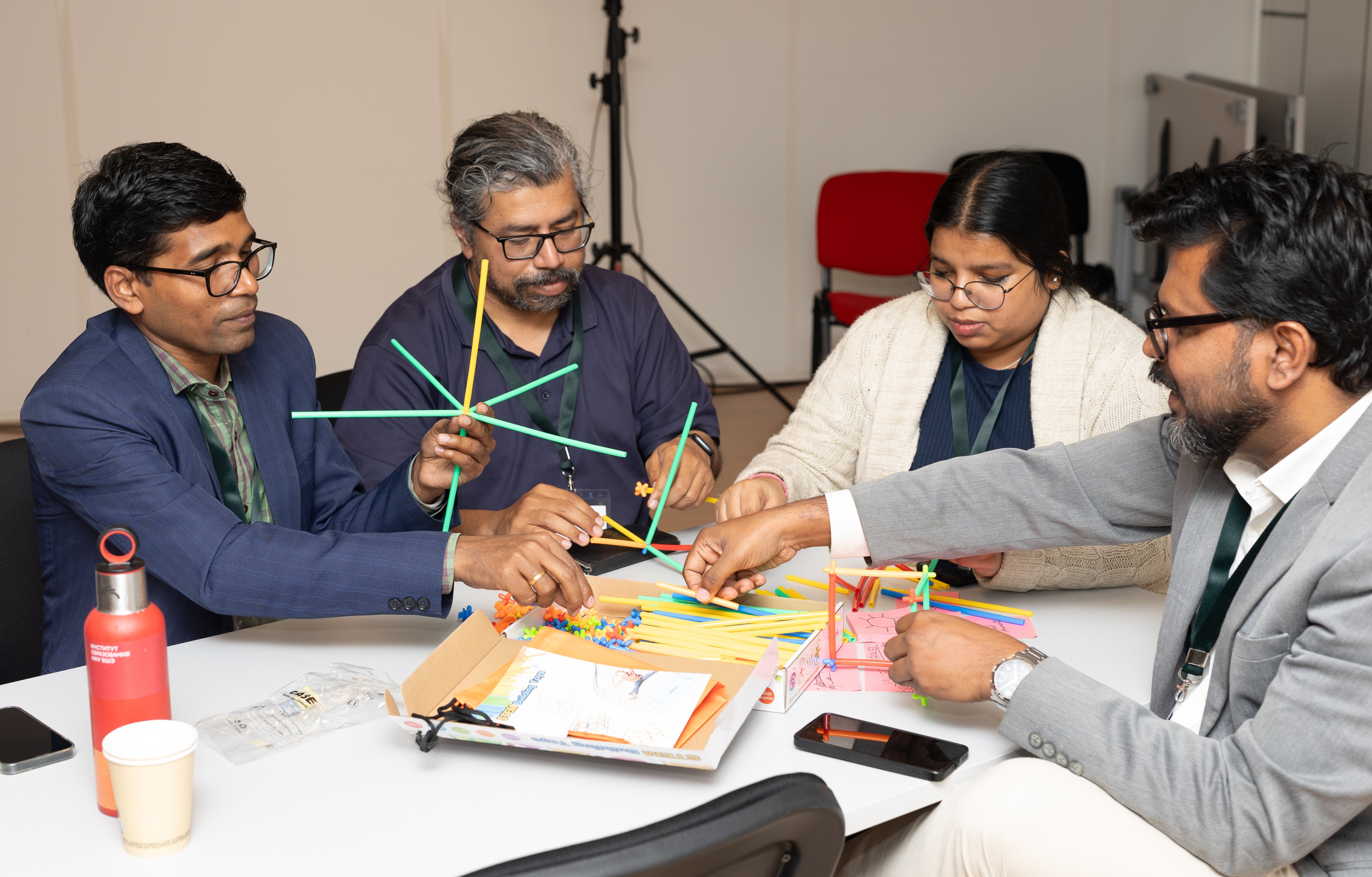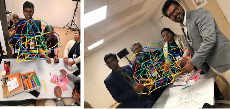 Because we were in France, we anchored the session in the work of Michel Callon and Bruno Latour, thinkers behind Actor-Network Theory (ANT). ANT reminds us that networks are made not only of people, but also of tools, technologies, laws and ideas—all of which act and interact. To make theory tangible and add to practical application, participants literally built bridges out of everyday materials, each element representing actors, values, relationships, or roles in a network of collaboration.